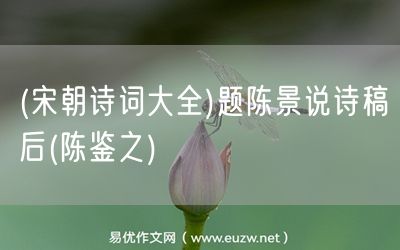 (宋朝詩(shī)詞大全)題陳景說(shuō)詩(shī)稿后(陳鑒之)由易優(yōu)作文(易優(yōu)悅讀)為大家精心整理發(fā)布,學(xué)作文,學(xué)閱讀,提升語(yǔ)文閱讀寫作能力,就來(lái)易優(yōu)悅讀。作文培訓(xùn),閱讀培訓(xùn),易優(yōu)悅讀助力每個(gè)孩子成為語(yǔ)文學(xué)霸。