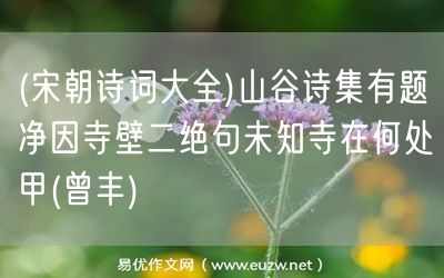 易優(yōu)作文網(wǎng)——(宋朝詩(shī)詞大全)山谷詩(shī)集有題凈因寺壁二絕句未知寺在何處甲(曾豐)