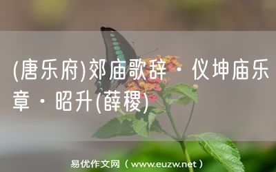 (唐樂府)郊廟歌辭·儀坤廟樂章·昭升(薛稷)由易優(yōu)作文(易優(yōu)悅讀)為大家精心整理發(fā)布,學(xué)作文,學(xué)閱讀,提升語文閱讀寫作能力,就來易優(yōu)悅讀。作文培訓(xùn),閱讀培訓(xùn),易優(yōu)悅讀助力每個(gè)孩子成為語文學(xué)霸。