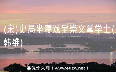 (宋)史局坐寢戲呈崇文掌學(xué)士(韓維)由易優(yōu)作文(易優(yōu)悅讀)為大家精心整理發(fā)布,學(xué)作文,學(xué)閱讀,提升語文閱讀寫作能力,就來易優(yōu)悅讀。作文培訓(xùn),閱讀培訓(xùn),易優(yōu)悅讀助力每個孩子成為語文學(xué)霸。