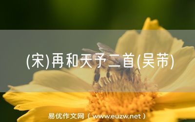 (宋)再和天予二首(吳芾)由易優(yōu)作文(易優(yōu)悅讀)為大家精心整理發(fā)布,學(xué)作文,學(xué)閱讀,提升語文閱讀寫作能力,就來易優(yōu)悅讀。作文培訓(xùn),閱讀培訓(xùn),易優(yōu)悅讀助力每個孩子成為語文學(xué)霸。