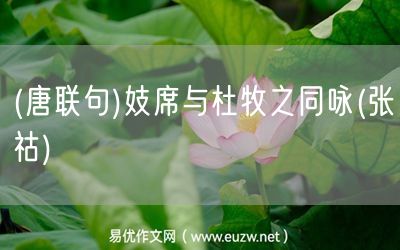 (唐聯句)妓席與杜牧之同詠(張祜)由易優(yōu)作文(易優(yōu)悅讀)為大家精心整理發(fā)布,學作文,學閱讀,提升語文閱讀寫作能力,就來易優(yōu)悅讀。作文培訓,閱讀培訓,易優(yōu)悅讀助力每個孩子成為語文學霸。