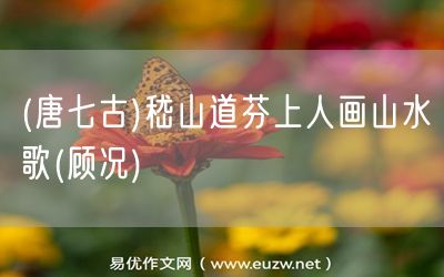 (唐七古)嵇山道芬上人畫山水歌(顧況)由易優(yōu)作文(易優(yōu)悅讀)為大家精心整理發(fā)布,學作文,學閱讀,提升語文閱讀寫作能力,就來易優(yōu)悅讀。作文培訓,閱讀培訓,易優(yōu)悅讀助力每個孩子成為語文學霸。