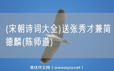 (宋朝詩詞大全)送張秀才兼簡德麟(陳師道)由易優(yōu)作文(易優(yōu)悅讀)為大家精心整理發(fā)布,學(xué)作文,學(xué)閱讀,提升語文閱讀寫作能力,就來易優(yōu)悅讀。作文培訓(xùn),閱讀培訓(xùn),易優(yōu)悅讀助力每個孩子成為語文學(xué)霸。