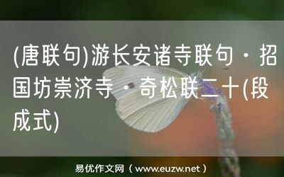 (唐聯(lián)句)游長(zhǎng)安諸寺聯(lián)句·招國坊崇濟(jì)寺·奇松聯(lián)二十(段成式)由易優(yōu)作文(易優(yōu)悅讀)為大家精心整理發(fā)布,學(xué)作文,學(xué)閱讀,提升語文閱讀寫作能力,就來易優(yōu)悅讀。作文培訓(xùn),閱讀培訓(xùn),易優(yōu)悅讀助力每個(gè)孩子成為語文學(xué)霸。 蘇州易優(yōu)中考語文培訓(xùn),吳老師語文課(Tel:181-1815-9898)