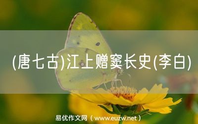 (唐七古)江上贈(zèng)竇長(zhǎng)史(李白)由易優(yōu)作文(易優(yōu)悅讀)為大家精心整理發(fā)布,學(xué)作文,學(xué)閱讀,提升語(yǔ)文閱讀寫(xiě)作能力,就來(lái)易優(yōu)悅讀。作文培訓(xùn),閱讀培訓(xùn),易優(yōu)悅讀助力每個(gè)孩子成為語(yǔ)文學(xué)霸。
