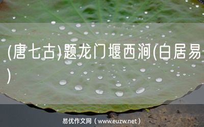 (唐七古)題龍門堰西澗(白居易)由易優(yōu)作文(易優(yōu)悅讀)為大家精心整理發(fā)布,學(xué)作文,學(xué)閱讀,提升語文閱讀寫作能力,就來易優(yōu)悅讀。作文培訓(xùn),閱讀培訓(xùn),易優(yōu)悅讀助力每個(gè)孩子成為語文學(xué)霸。