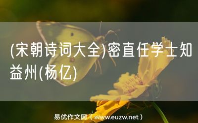 (宋朝詩詞大全)密直任學(xué)士知益州(楊億)由易優(yōu)作文(易優(yōu)悅讀)為大家精心整理發(fā)布,學(xué)作文,學(xué)閱讀,提升語文閱讀寫作能力,就來易優(yōu)悅讀。作文培訓(xùn),閱讀培訓(xùn),易優(yōu)悅讀助力每個孩子成為語文學(xué)霸。