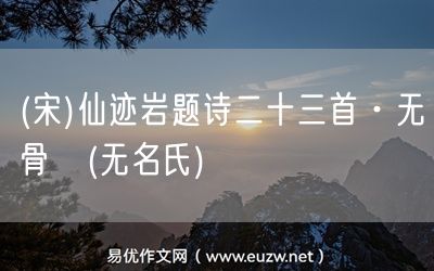 (宋)仙跡巖題詩(shī)二十三首·無(wú)骨篛(無(wú)名氏)由易優(yōu)作文(易優(yōu)悅讀)為大家精心整理發(fā)布,學(xué)作文,學(xué)閱讀,提升語(yǔ)文閱讀寫(xiě)作能力,就來(lái)易優(yōu)悅讀。作文培訓(xùn),閱讀培訓(xùn),易優(yōu)悅讀助力每個(gè)孩子成為語(yǔ)文學(xué)霸。