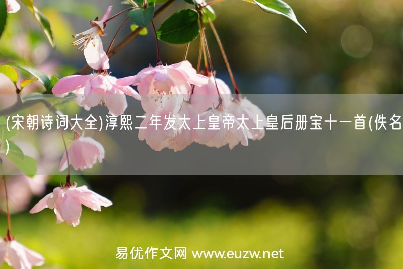 (宋朝詩(shī)詞大全)淳熙二年發(fā)太上皇帝太上皇后冊(cè)寶十一首(佚名)由易優(yōu)作文(易優(yōu)悅讀)為大家精心整理發(fā)布,學(xué)作文,學(xué)閱讀,提升語(yǔ)文閱讀寫作能力,就來(lái)易優(yōu)悅讀。作文培訓(xùn),閱讀培訓(xùn),易優(yōu)悅讀助力每個(gè)孩子成為語(yǔ)文學(xué)霸。