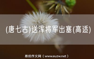 (唐七古)送渾將軍出塞(高適)由易優(yōu)作文(易優(yōu)悅讀)為大家精心整理發(fā)布,學(xué)作文,學(xué)閱讀,提升語(yǔ)文閱讀寫作能力,就來(lái)易優(yōu)悅讀。作文培訓(xùn),閱讀培訓(xùn),易優(yōu)悅讀助力每個(gè)孩子成為語(yǔ)文學(xué)霸。