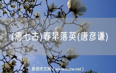 (唐七古)春早落英(唐彥謙)由易優(yōu)作文(易優(yōu)悅讀)為大家精心整理發(fā)布,學(xué)作文,學(xué)閱讀,提升語文閱讀寫作能力,就來易優(yōu)悅讀。作文培訓(xùn),閱讀培訓(xùn),易優(yōu)悅讀助力每個孩子成為語文學(xué)霸。