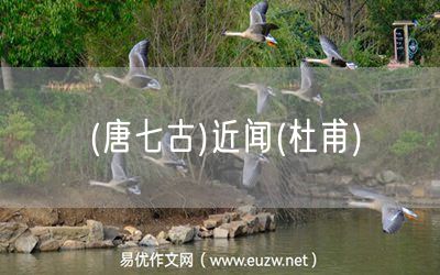 (唐七古)近聞(杜甫)由易優(yōu)作文(易優(yōu)悅讀)為大家精心整理發(fā)布,學(xué)作文,學(xué)閱讀,提升語(yǔ)文閱讀寫作能力,就來(lái)易優(yōu)悅讀。作文培訓(xùn),閱讀培訓(xùn),易優(yōu)悅讀助力每個(gè)孩子成為語(yǔ)文學(xué)霸。 蘇州易優(yōu)語(yǔ)文培訓(xùn),中小學(xué)閱讀寫作同步提升 http://www.zequeka.cn/miniform.html