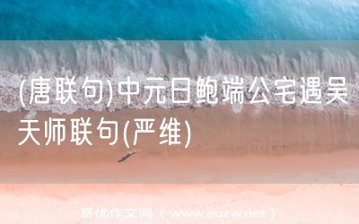 (唐聯(lián)句)中元日鮑端公宅遇吳天師聯(lián)句(嚴(yán)維)由易優(yōu)作文(易優(yōu)悅讀)為大家精心整理發(fā)布,學(xué)作文,學(xué)閱讀,提升語(yǔ)文閱讀寫(xiě)作能力,就來(lái)易優(yōu)悅讀。作文培訓(xùn),閱讀培訓(xùn),易優(yōu)悅讀助力每個(gè)孩子成為語(yǔ)文學(xué)霸。