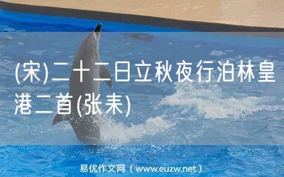 (宋)二十二日立秋夜行泊林皇港二首(張耒)由易優(yōu)作文(易優(yōu)悅讀)為大家精心整理發(fā)布,學(xué)作文,學(xué)閱讀,提升語文閱讀寫作能力,就來易優(yōu)悅讀。作文培訓(xùn),閱讀培訓(xùn),易優(yōu)悅讀助力每個孩子成為語文學(xué)霸。