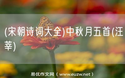 (宋朝詩詞大全)中秋月五首(汪莘)由易優(yōu)作文(易優(yōu)悅讀)為大家精心整理發(fā)布,學作文,學閱讀,提升語文閱讀寫作能力,就來易優(yōu)悅讀。作文培訓,閱讀培訓,易優(yōu)悅讀助力每個孩子成為語文學霸。