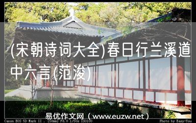 (宋朝詩(shī)詞大全)春日行蘭溪道中六言(范浚)由易優(yōu)作文(易優(yōu)悅讀)為大家精心整理發(fā)布,學(xué)作文,學(xué)閱讀,提升語(yǔ)文閱讀寫(xiě)作能力,就來(lái)易優(yōu)悅讀。作文培訓(xùn),閱讀培訓(xùn),易優(yōu)悅讀助力每個(gè)孩子成為語(yǔ)文學(xué)霸。