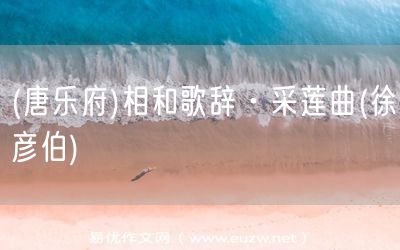 (唐樂府)相和歌辭·采蓮曲(徐彥伯)由易優(yōu)作文(易優(yōu)悅讀)為大家精心整理發(fā)布,學作文,學閱讀,提升語文閱讀寫作能力,就來易優(yōu)悅讀。作文培訓,閱讀培訓,易優(yōu)悅讀助力每個孩子成為語文學霸。