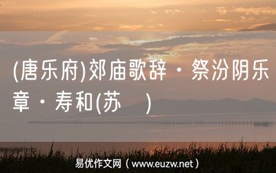 (唐樂府)郊廟歌辭·祭汾陰樂章·壽和(蘇颋)由易優(yōu)作文(易優(yōu)悅讀)為大家精心整理發(fā)布,學作文,學閱讀,提升語文閱讀寫作能力,就來易優(yōu)悅讀。