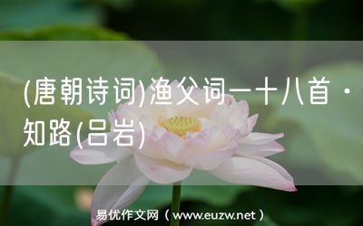(唐朝詩詞)漁父詞一十八首·知路(呂巖)由易優(yōu)作文(易優(yōu)悅讀)為大家精心整理發(fā)布,學(xué)作文,學(xué)閱讀,提升語文閱讀寫作能力,就來易優(yōu)悅讀。作文培訓(xùn),閱讀培訓(xùn),易優(yōu)悅讀助力每個孩子成為語文學(xué)霸。