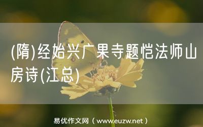(隋)經(jīng)始興廣果寺題愷法師山房詩(江總)由易優(yōu)作文(易優(yōu)悅讀)為大家精心整理發(fā)布,學(xué)作文,學(xué)閱讀,提升語文閱讀寫作能力,就來易優(yōu)悅讀。作文培訓(xùn),閱讀培訓(xùn),易優(yōu)悅讀助力每個(gè)孩子成為語文學(xué)霸。