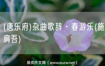 (唐樂府)雜曲歌辭·春游樂(施肩吾)由易優(yōu)作文(易優(yōu)悅讀)為大家精心整理發(fā)布,學(xué)作文,學(xué)閱讀,提升語文閱讀寫作能力,就來易優(yōu)悅讀。作文培訓(xùn),閱讀培訓(xùn),易優(yōu)悅讀助力每個孩子成為語文學(xué)霸。