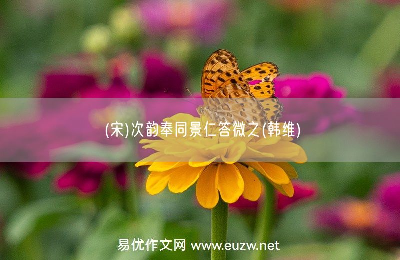 (宋)次韻奉同景仁答微之(韓維)由易優(yōu)作文(易優(yōu)悅讀)為大家精心整理發(fā)布,學(xué)作文,學(xué)閱讀,提升語(yǔ)文閱讀寫(xiě)作能力,就來(lái)易優(yōu)悅讀。作文培訓(xùn),閱讀培訓(xùn),易優(yōu)悅讀助力每個(gè)孩子成為語(yǔ)文學(xué)霸。