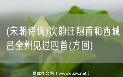 易優(yōu)作文網(wǎng)——(宋朝詩(shī)詞)次韻汪翔甫和西城呂全州見(jiàn)過(guò)四首(方回)