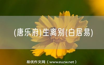 (唐樂府)生離別(白居易)由易優(yōu)作文(易優(yōu)悅讀)為大家精心整理發(fā)布,學(xué)作文,學(xué)閱讀,提升語(yǔ)文閱讀寫作能力,就來易優(yōu)悅讀。作文培訓(xùn),閱讀培訓(xùn),易優(yōu)悅讀助力每個(gè)孩子成為語(yǔ)文學(xué)霸。