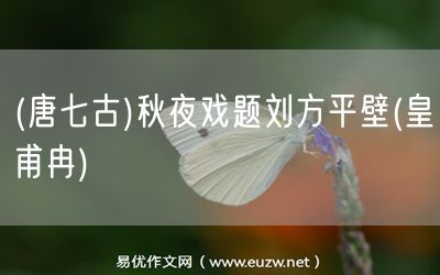 (唐七古)秋夜戲題劉方平壁(皇甫冉)由易優(yōu)作文(易優(yōu)悅讀)為大家精心整理發(fā)布,學(xué)作文,學(xué)閱讀,提升語(yǔ)文閱讀寫作能力,就來(lái)易優(yōu)悅讀。作文培訓(xùn),閱讀培訓(xùn),易優(yōu)悅讀助力每個(gè)孩子成為語(yǔ)文學(xué)霸。