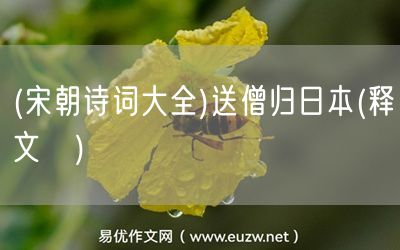(宋朝詩詞大全)送僧歸日本(釋文珦)由易優(yōu)作文(易優(yōu)悅讀)為大家精心整理發(fā)布,學(xué)作文,學(xué)閱讀,提升語文閱讀寫作能力,就來易優(yōu)悅讀。作文培訓(xùn),閱讀培訓(xùn),易優(yōu)悅讀助力每個孩子成為語文學(xué)霸。