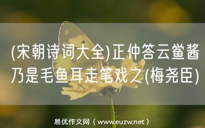 (宋朝詩(shī)詞大全)正仲答云鱟醬乃是毛魚(yú)耳走筆戲之(梅堯臣)由易優(yōu)作文(易優(yōu)悅讀)為大家精心整理發(fā)布,學(xué)作文,學(xué)閱讀,提升語(yǔ)文閱讀寫(xiě)作能力,就來(lái)易優(yōu)悅讀。作文培訓(xùn),閱讀培訓(xùn),易優(yōu)悅讀助力每個(gè)孩子成為語(yǔ)文學(xué)霸。