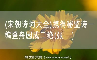 易優(yōu)作文網(wǎng)——(宋朝詩詞大全)攜得秘監(jiān)詩一編登舟因成二絕(張镃)