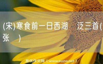 (宋)寒食前一日西湖閒泛三首(張镃)由易優(yōu)作文(易優(yōu)悅讀)為大家精心整理發(fā)布,學(xué)作文,學(xué)閱讀,提升語(yǔ)文閱讀寫(xiě)作能力,就來(lái)易優(yōu)悅讀。作文培訓(xùn),閱讀培訓(xùn),易優(yōu)悅讀助力每個(gè)孩子成為語(yǔ)文學(xué)霸。