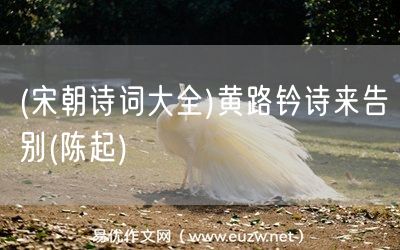 (宋朝詩詞大全)黃路鈐詩來告別(陳起)由易優(yōu)作文(易優(yōu)悅讀)為大家精心整理發(fā)布,學(xué)作文,學(xué)閱讀,提升語文閱讀寫作能力,就來易優(yōu)悅讀。作文培訓(xùn),閱讀培訓(xùn),易優(yōu)悅讀助力每個(gè)孩子成為語文學(xué)霸。