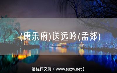 (唐樂(lè)府)送遠(yuǎn)吟(孟郊)由易優(yōu)作文(易優(yōu)悅讀)為大家精心整理發(fā)布,學(xué)作文,學(xué)閱讀,提升語(yǔ)文閱讀寫(xiě)作能力,就來(lái)易優(yōu)悅讀。作文培訓(xùn),閱讀培訓(xùn),易優(yōu)悅讀助力每個(gè)孩子成為語(yǔ)文學(xué)霸。