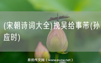 易優(yōu)作文網(wǎng)——(宋朝詩(shī)詞大全)挽吳給事芾(孫應(yīng)時(shí))