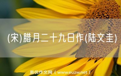(宋)臘月二十九日作(陸文圭)由易優(yōu)作文(易優(yōu)悅讀)為大家精心整理發(fā)布,學作文,學閱讀,提升語文閱讀寫作能力,就來易優(yōu)悅讀。作文培訓,閱讀培訓,易優(yōu)悅讀助力每個孩子成為語文學霸。