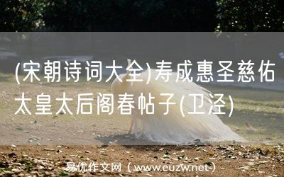 (宋朝詩(shī)詞大全)壽成惠圣慈佑太皇太后閣春帖子(衛(wèi)涇)由易優(yōu)作文(易優(yōu)悅讀)為大家精心整理發(fā)布,學(xué)作文,學(xué)閱讀,提升語(yǔ)文閱讀寫作能力,就來(lái)易優(yōu)悅讀。作文培訓(xùn),閱讀培訓(xùn),易優(yōu)悅讀助力每個(gè)孩子成為語(yǔ)文學(xué)霸。