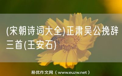 (宋朝詩(shī)詞大全)正肅吳公挽辭三首(王安石)由易優(yōu)作文(易優(yōu)悅讀)為大家精心整理發(fā)布,學(xué)作文,學(xué)閱讀,提升語(yǔ)文閱讀寫作能力,就來(lái)易優(yōu)悅讀。作文培訓(xùn),閱讀培訓(xùn),易優(yōu)悅讀助力每個(gè)孩子成為語(yǔ)文學(xué)霸。