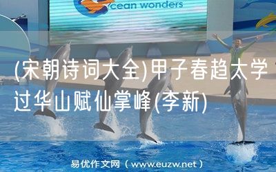 (宋朝詩(shī)詞大全)甲子春趨太學(xué)過華山賦仙掌峰(李新)由易優(yōu)作文(易優(yōu)悅讀)為大家精心整理發(fā)布,學(xué)作文,學(xué)閱讀,提升語(yǔ)文閱讀寫作能力,就來易優(yōu)悅讀。作文培訓(xùn),閱讀培訓(xùn),易優(yōu)悅讀助力每個(gè)孩子成為語(yǔ)文學(xué)霸。