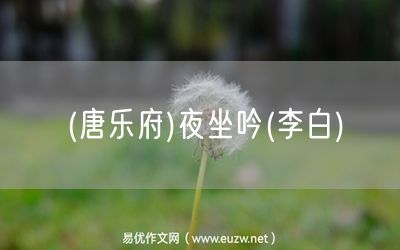 (唐樂府)夜坐吟(李白)由易優(yōu)作文(易優(yōu)悅讀)為大家精心整理發(fā)布,學(xué)作文,學(xué)閱讀,提升語文閱讀寫作能力,就來易優(yōu)悅讀。作文培訓(xùn),閱讀培訓(xùn),易優(yōu)悅讀助力每個(gè)孩子成為語文學(xué)霸。