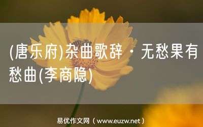 (唐樂府)雜曲歌辭·無(wú)愁果有愁曲(李商隱)由易優(yōu)作文(易優(yōu)悅讀)為大家精心整理發(fā)布,學(xué)作文,學(xué)閱讀,提升語(yǔ)文閱讀寫作能力,就來(lái)易優(yōu)悅讀。作文培訓(xùn),閱讀培訓(xùn),易優(yōu)悅讀助力每個(gè)孩子成為語(yǔ)文學(xué)霸。