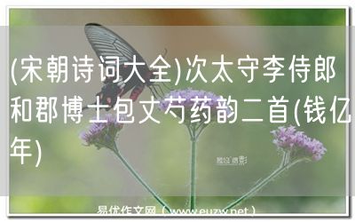 (宋朝詩(shī)詞大全)次太守李侍郎和郡博士包丈芍藥韻二首(錢億年)由易優(yōu)作文(易優(yōu)悅讀)為大家精心整理發(fā)布,學(xué)作文,學(xué)閱讀,提升語(yǔ)文閱讀寫作能力,就來(lái)易優(yōu)悅讀。作文培訓(xùn),閱讀培訓(xùn),易優(yōu)悅讀助力每個(gè)孩子成為語(yǔ)文學(xué)霸。