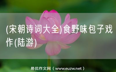 (宋朝詩詞大全)食野味包子戲作(陸游)由易優(yōu)作文(易優(yōu)悅讀)為大家精心整理發(fā)布,學(xué)作文,學(xué)閱讀,提升語文閱讀寫作能力,就來易優(yōu)悅讀。作文培訓(xùn),閱讀培訓(xùn),易優(yōu)悅讀助力每個(gè)孩子成為語文學(xué)霸。