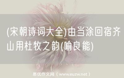 (宋朝詩詞大全)由當(dāng)涂回宿齊山用杜牧之韻(喻良能)由易優(yōu)作文(易優(yōu)悅讀)為大家精心整理發(fā)布,學(xué)作文,學(xué)閱讀,提升語文閱讀寫作能力,就來易優(yōu)悅讀。作文培訓(xùn),閱讀培訓(xùn),易優(yōu)悅讀助力每個孩子成為語文學(xué)霸。
