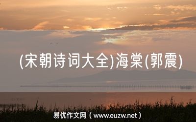 (宋朝詩(shī)詞大全)海棠(郭震)由易優(yōu)作文(易優(yōu)悅讀)為大家精心整理發(fā)布,學(xué)作文,學(xué)閱讀,提升語(yǔ)文閱讀寫作能力,就來(lái)易優(yōu)悅讀。作文培訓(xùn),閱讀培訓(xùn),易優(yōu)悅讀助力每個(gè)孩子成為語(yǔ)文學(xué)霸。