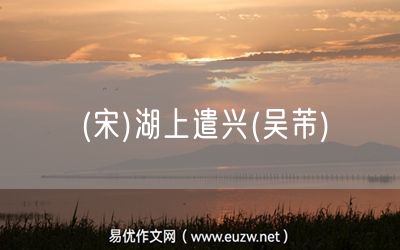 (宋)湖上遣興(吳芾)由易優(yōu)作文(易優(yōu)悅讀)為大家精心整理發(fā)布,學作文,學閱讀,提升語文閱讀寫作能力,就來易優(yōu)悅讀。作文培訓,閱讀培訓,易優(yōu)悅讀助力每個孩子成為語文學霸。