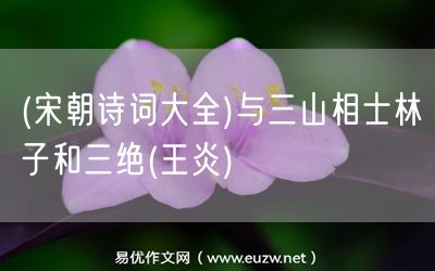 (宋朝詩詞大全)與三山相士林子和三絕(王炎)由易優(yōu)作文(易優(yōu)悅讀)為大家精心整理發(fā)布,學(xué)作文,學(xué)閱讀,提升語文閱讀寫作能力,就來易優(yōu)悅讀。作文培訓(xùn),閱讀培訓(xùn),易優(yōu)悅讀助力每個孩子成為語文學(xué)霸。
