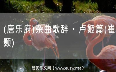 (唐樂府)雜曲歌辭·盧姬篇(崔顥)由易優(yōu)作文(易優(yōu)悅讀)為大家精心整理發(fā)布,學(xué)作文,學(xué)閱讀,提升語文閱讀寫作能力,就來易優(yōu)悅讀。作文培訓(xùn),閱讀培訓(xùn),易優(yōu)悅讀助力每個孩子成為語文學(xué)霸。
